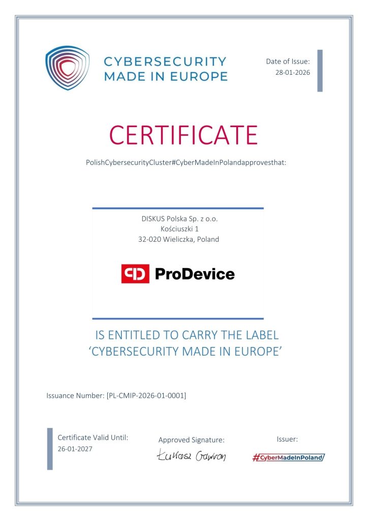 Znak „Cybersecurity Made in Europe” po raz kolejny dla DISKUS Polska